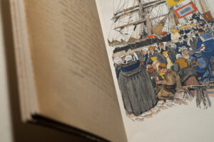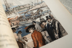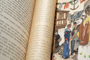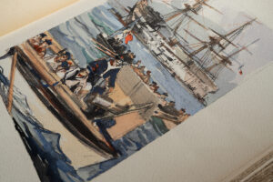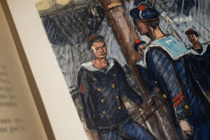 Matelot è il meno conosciuto dei romanzi della trilogia marina di Pierre. Pubblicato nel 1893, racconta la storia di Jean Berny che, non avendo superato gli esami alla Scuola Navale, decide di arruolarsi come semplice marinaio, il matelot, nella marina mercantile. La sua è un’esistenza durissima: amori di breve durata, la rinuncia a diventare ufficiale e infine la malattia nelle paludi dell’Estremo Oriente dove l’eroe muore, vittima delle febbri contratte in un porto cinese. L’ultimo sfregio a quel corpo ormai consunto, allorché cucito nel sacco di tela d’ordinanza, sarà quello di essere gettato fuoribordo. Quando la marina francese rientra dopo un mese al porto di Brest, viene annunciata la sua morte. Loti utilizza anche in questo romanzo la sua esperienza di ufficiale di marina ma traspone nel carattere del protagonista la vita del suo amico e “fratello ideale” Léopold Thémèze, pur conferendo all’eroe della vicenda un diverso e tragico epilogo. Le immagini evidenziano la sequenza temporale della breve e tragica vita del giovane Jean Berny.